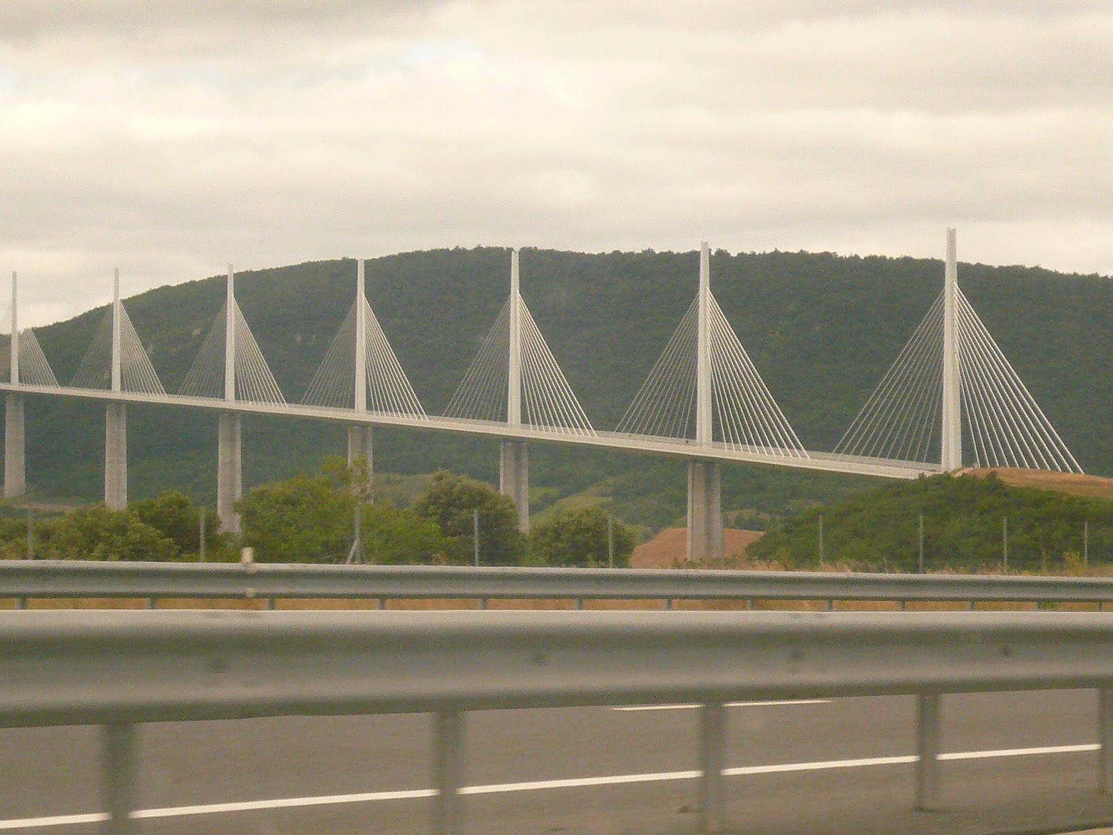 Ahora, preparad vuestras cámaras: Vamos a cruzar el famoso Viaducto de Millau (Km. 442). Construido por el famoso ingeniero Norman Foster, es una obra impresionante de la ingeniería moderna. (Leer más en Una semana en la Auvernia).